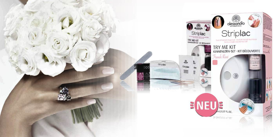 NEU: Für alle Fans natürlicher Nägel gibt es das Striplac Try Me Kit French Rosé. Dieses Set bietet mit Striplac French Rosé den perfekten Ton für Nägel im schönsten Nudelook. UVP 59,95 EUR