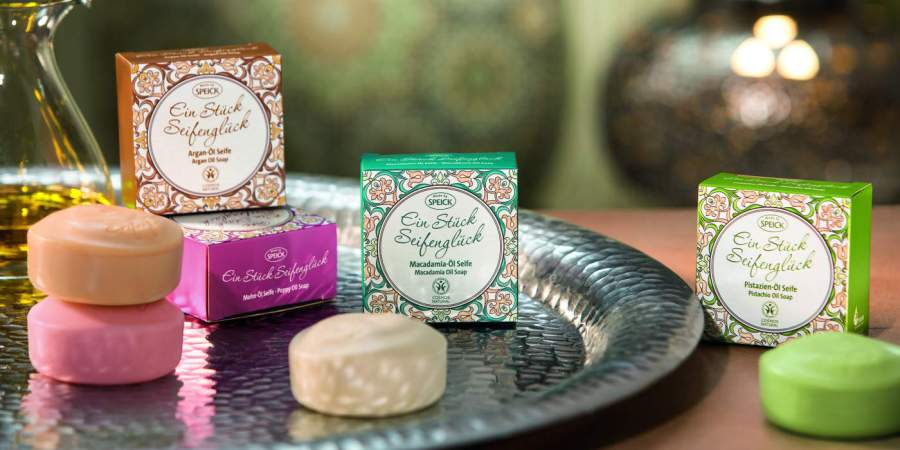 Pure, pflegende und kostbare Öle aus kontrolliert biologischem Anbau sind eingehüllt in ein besonders handschmeichlerisches, organisch-geformtes Seifenstück – verpackt in einem ornamentreichen, geprägten und FSC-zertifizierten Karton. Besonders schön ist jede einzelne der Öl-Seifen auch als verwöhnendes Duft-Mitbringsel.