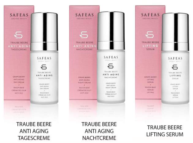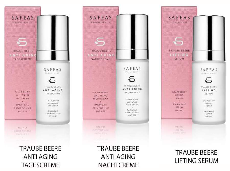 SAFEAS Traube Beere Anti Aging Systempflege kombiniert erstmals die außergewönlich antioxidative und regenerierende Kraft von 26 Powerwirkstoffen aus der Natur, um der Haut ihre natürliche Festigkeit, Elastizität und Vitalität zurückzugeben und ihre jugendliche Ausstrahlung zu erwecken. Die Synergieeffekte dieser Powerwirkstoffe und ihre Fähigkeit, tief in die Haut einzudringen, erhöhen ihre Effizienz und sorgen so für die außergewöhnliche Wirksamkeit der Traube Beere Anti Aging Systempflege. Die besonders milden, bewußt unparfümierten, 100% vegane Präparate passen sich der individuellen Geschichte der Haut an und bieten umfassende Anti Aging Lösungen für eine sichtbar jünger aussehende Haut.