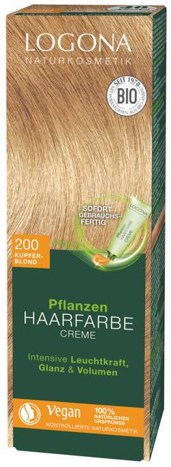 Die LOGONA Naturkosmetik Pflanzen-Haarfarben Cremes sind schon fertig angemischt und gebrauchsfertig. Fünf Farbnuancen von Kupferblond bis Nougatbraun stehen als Creme zur Verfügung und werden ohne vorheriges Anrühren einfach aufgetragen. Je nach Farbintensitätswunsch beträgt die Einwirkzeit 15 Minuten bis zu zwei Stunden.