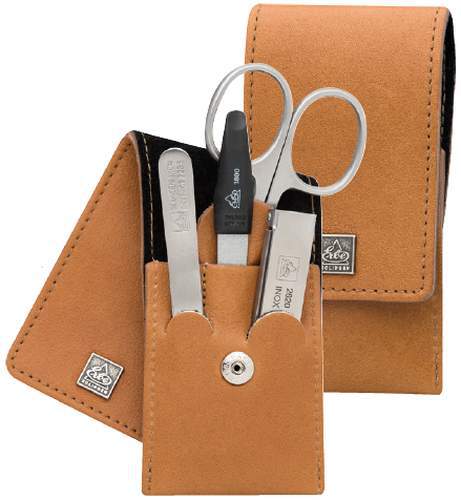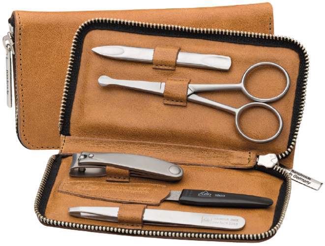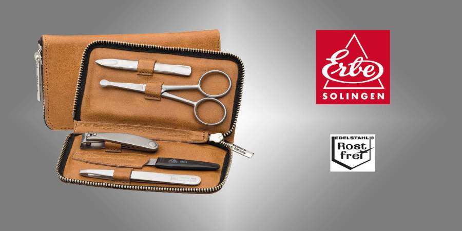 Für die Nagelpflege zuhause und unterwegs eignet sich jedes einzelne der fünf Modelle der neuen Etuiserie „Cognac“ ideal. Aus edlem und langlebig verarbeitetem Leder bestehen die Hüllen für die Original ERBE® Edelstahl Rostfrei Stahlwaren.